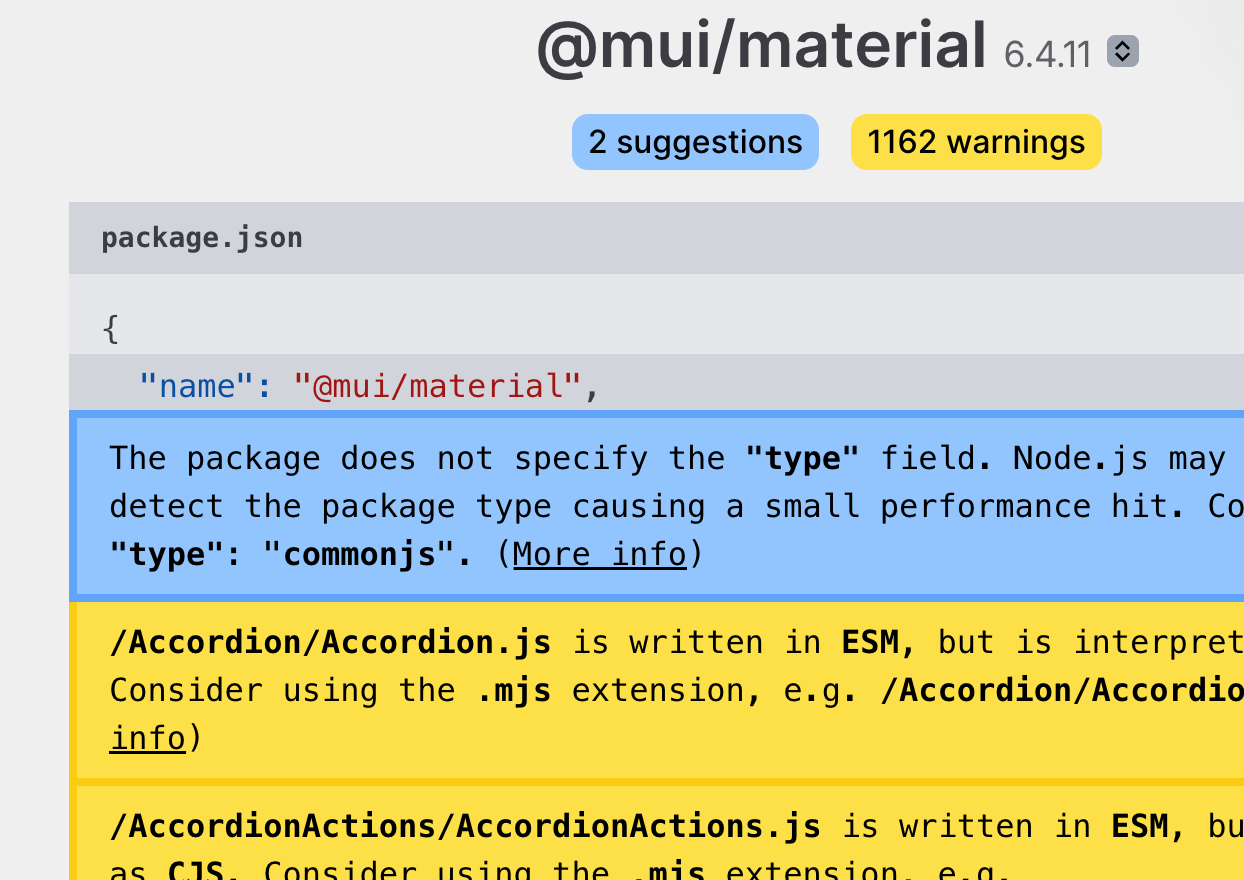 This update fixes several issues with popular bundlers like Vite and webpack, and makes it possible to load MaterialĀ UI packages from ESĀ modules under Node.js. More details in mui/material-ui#43938.